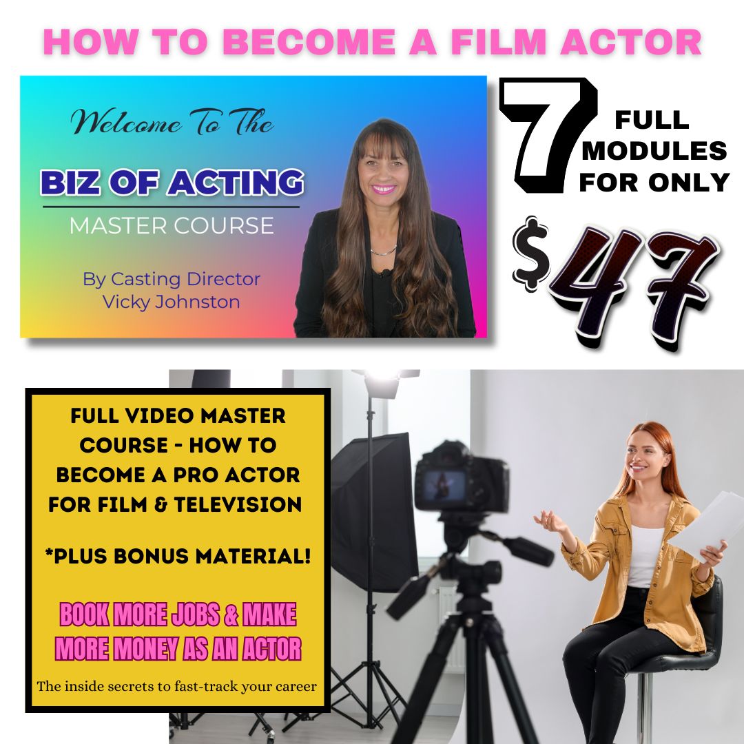 The Biz Of Acting Course is an all-encompassing online program tailored to new and aspiring actors including parents of child actors. It’s a deep dive into the business side of the film industry with expert guidance from freelance Casting Director Vicky Johnston. These easy to follow step-by-step video tutorials make it simple to navigate the complexities of an acting career and it offers you a greater understanding of how the industry works. There is simply nothing else this indepth for actors.